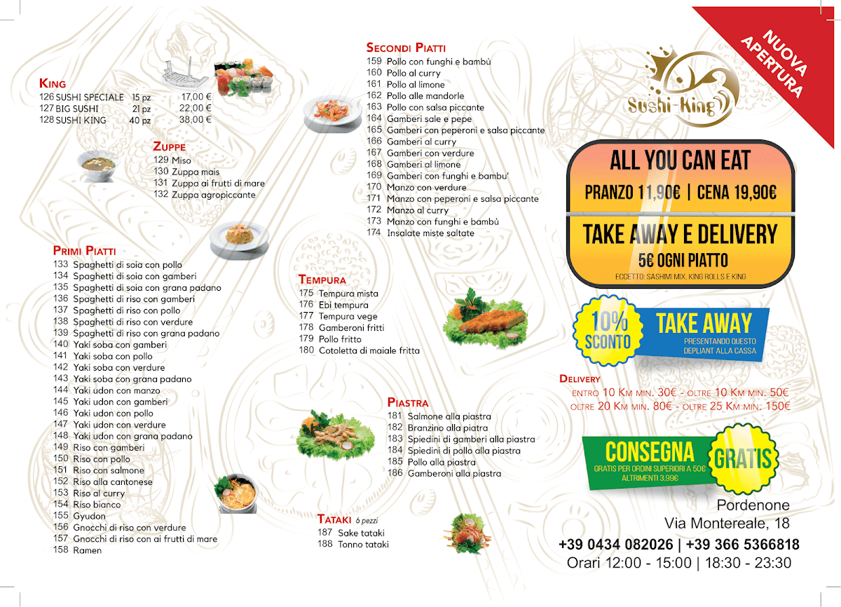 Welcome to Sushi King, a gem tucked away in Pordenone, Italy, where culinary artistry meets unmatched freshness. This vibrant eatery specializes in a wide variety of sushi, expertly crafted with high-quality ingredients that guarantee a delightful flavor explosion in every bite.